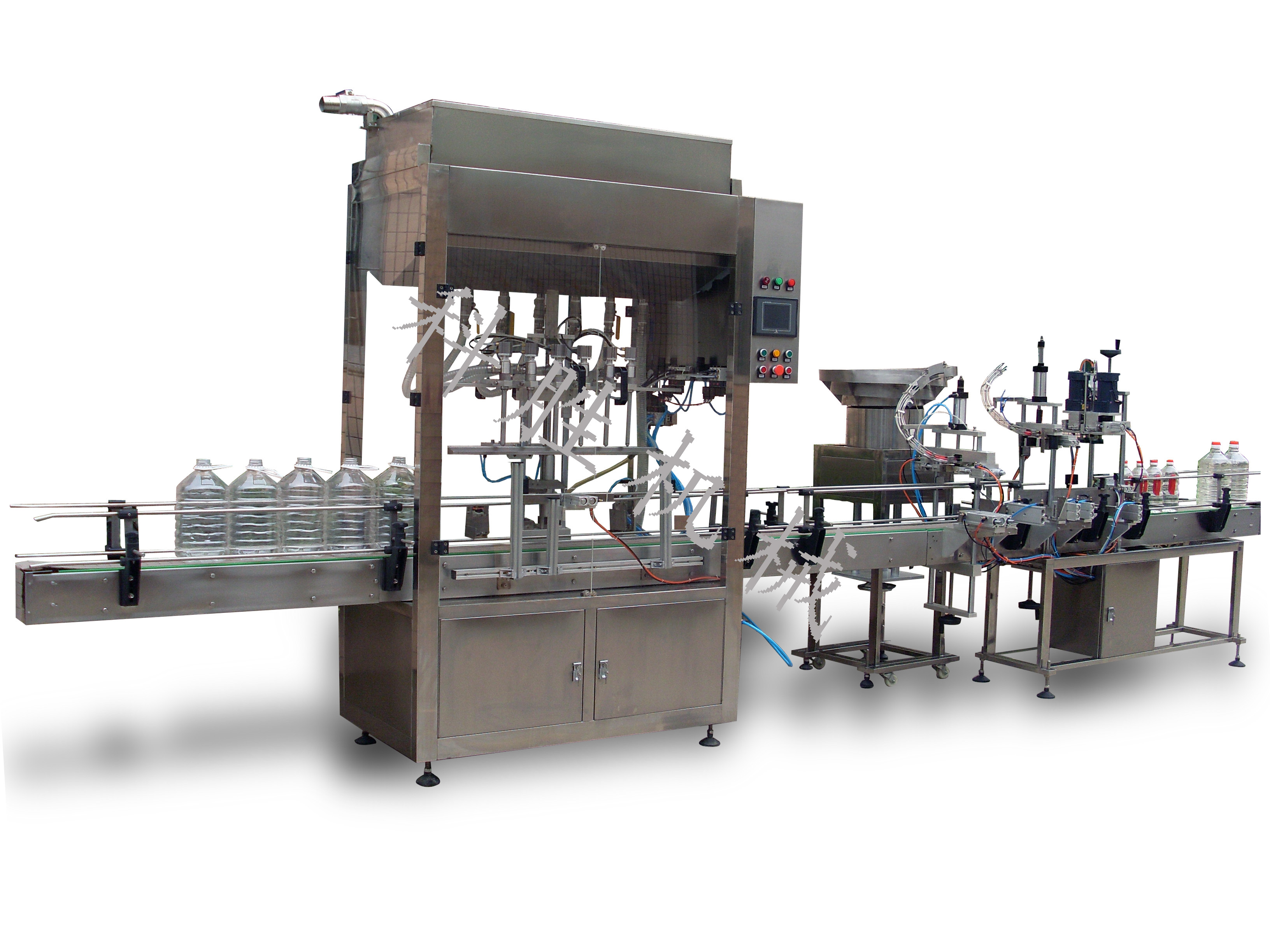 油類灌裝旋蓋貼標噴碼線技術參數(送瓶輸送帶+旋轉式灌裝機+立式貼標+自動旋蓋機+送瓶機)